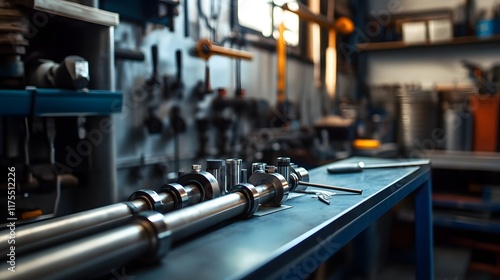 Fototapeta premium Precision Metal Parts Resting On A Workshop Table