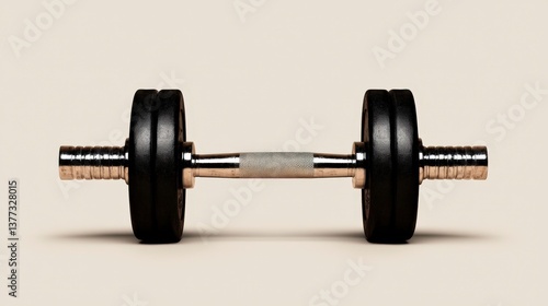 © Pojjanee, Naklejka premium Precision Weightlifting: A sleek, modern dumbbell, a symbol of strength, fitness, and dedication, poised against a serene backdrop, embodies the spirit of achieving peak physical condition