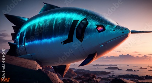 © Jefferson, Fototapeta premium Predator's Domain: Shark Infested Waters" [AI Generated]