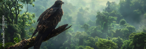 Fototapeta premium Predatory bird perched on a tree branch in a tranquil wilderness