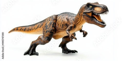 © Wannaeka, Obraz premium Predatory T-Rex dinosaur in dynamic pose with menacing gaze on white background