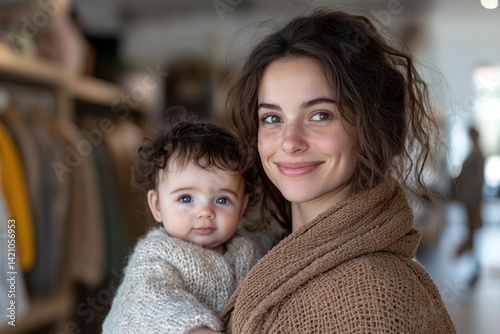 © Dennis, Obraz premium Pregnancy happiness: expectant mother excitedly shopping for baby essentials