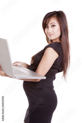 © Poulsons Photography, Naklejka premium Pregnant business woman laptop happy