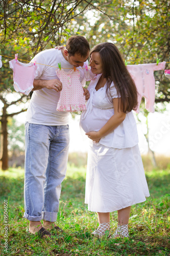 © oksix, Fototapeta premium Pregnant couple outdoor