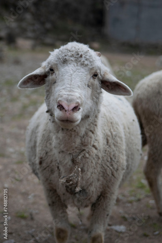 Obraz premium Pregnant sheep standing and looking camera