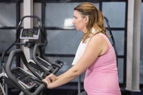 © WavebreakMediaMicro, Fototapeta premium Pregnant woman on exercising bike