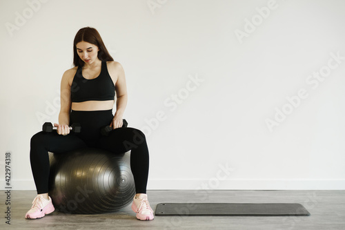 Fototapeta premium Pregnant woman playing sports on fitball