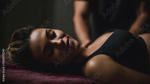 © Thares2020, Obraz premium Pregnant woman receiving a relaxing prenatal massage