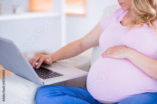 Naklejka premium Pregnant woman using her laptop