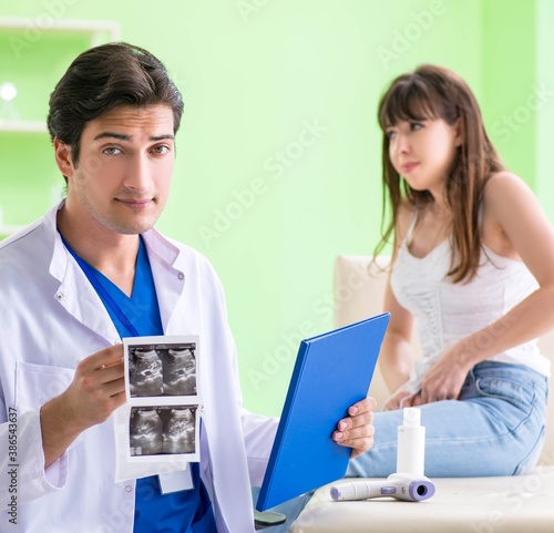 Fototapeta premium Pregnant woman visiting radiologyst for ultrasound