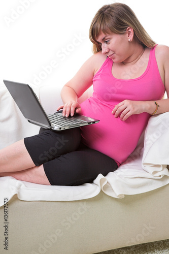Fototapeta premium pregnant woman with laptop