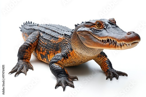 Obraz premium prehistoric crocodile on white background detailed scales powerful jaw...