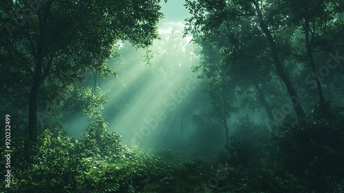 © Devian Art, Fototapeta premium Prehistoric forest with a smoking erupting volcano.
