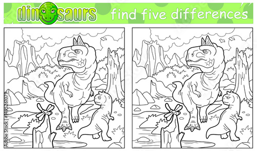 Obraz premium prehistoric funny dinosaur coloring book, find five differences