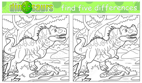 Obraz premium prehistoric funny dinosaur coloring book, find five differences