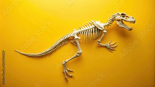 Obraz premium Prehistoric Reptile Skeletal Remains on Vibrant Yellow Background