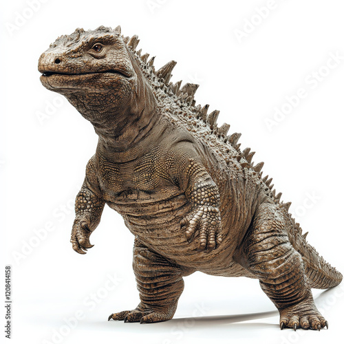 © kullapassorn, Obraz premium Prehistoric reptile, standing, detailed textured skin, powerful stance.