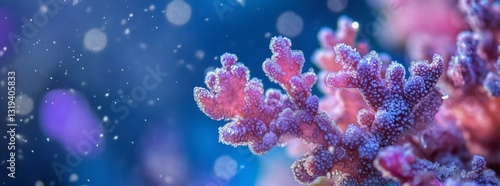© KateSvc, Fototapeta premium Premium Background. Painting with corals, underwater world, fauna. Luxury art for flyer, poster, notepad. Advertising, luxury photography for exhibition.