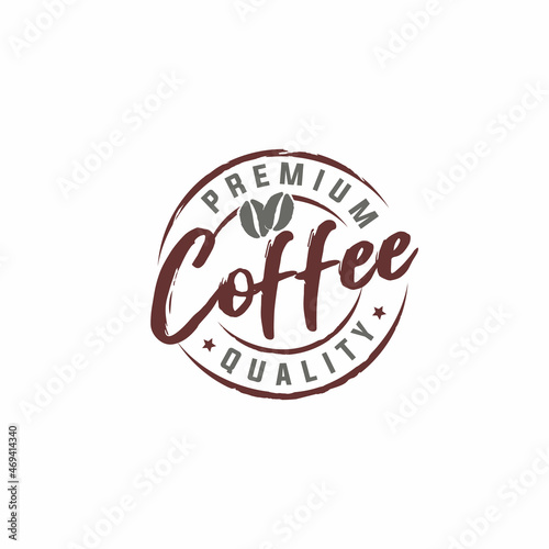 Obraz premium premium coffee quality stamp vector with coffee beans