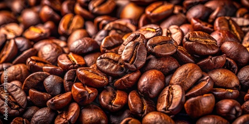 Fototapeta premium Premium, dark roasted whole coffee beans piled high; a captivating image for...