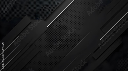 Obraz premium 33. Premium deep black background with dynamic halftone gradient effect, accentuated by angular diagonal lines.
