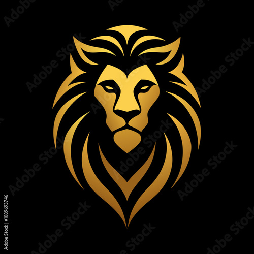 © khadiza, Obraz premium Premium Golden Roaring Lion Face Logo Radiating Luxury and Refinement in Elegant Vector Design