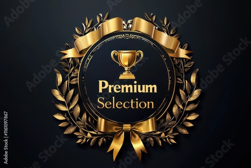 Fototapeta premium Premium Selection Trophy and Laurel Design in Gold With Elegant Black Background