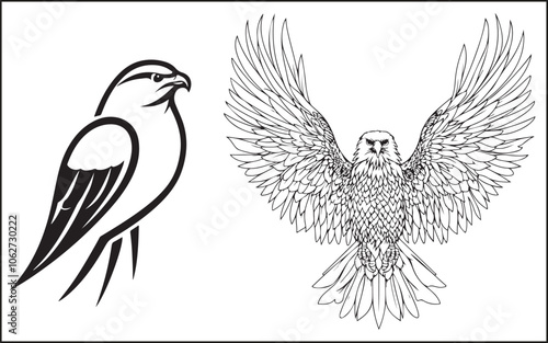 © ABU SALEH, Fototapeta premium Premium Vector, Flying Eagle Black Color Logo