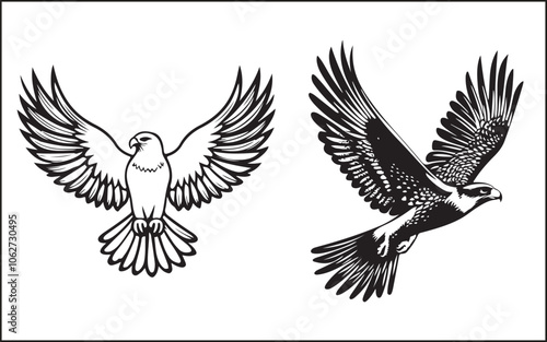 © ABU SALEH, Obraz premium Premium Vector, Flying Eagle Black Color Logo