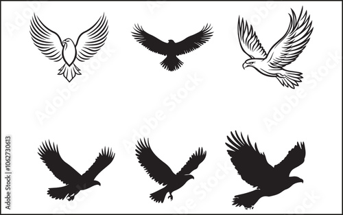 © ABU SALEH, Obraz premium Premium Vector, Flying Eagle Black Color Logo