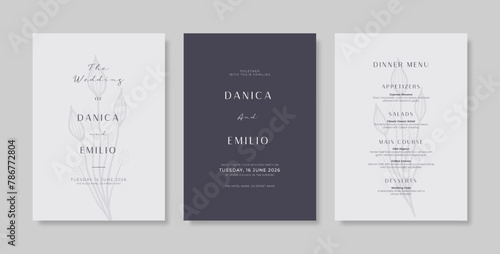 © bacapola, Fototapeta premium Premium wedding invitation template. Wedding engagement template with monchrome style. engraved wedding invitation template