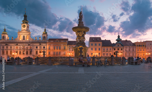 © Jiri Dolezal, Obraz premium Premysl Otakar II.square in Ceske Budejovice in the night, Czech Republic