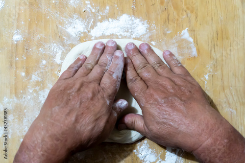 © AnaPliego, Fototapeta premium Preparación de masa de pizza en casa