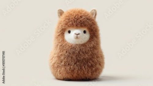 © Sarunya, Obraz premium Preschool cute alpaca, fluffy round pastel shape, tiny face, white background