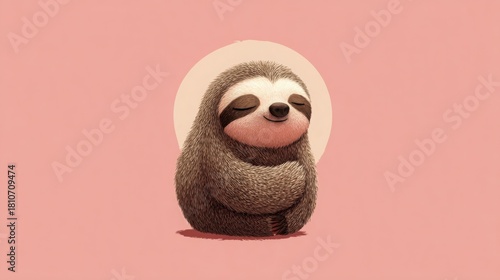 Naklejka premium Preschool-style cute sloth, super round body, pastel brown, tiny smile, soft...