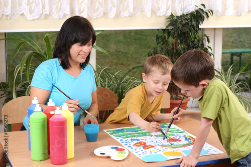 © matka_Wariatka, Fototapeta premium preschoolers and painting