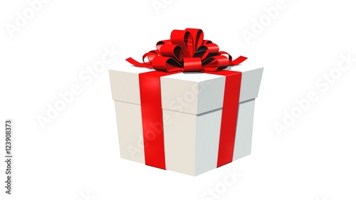 © Riko Best, Obraz premium Present box for Christmas or birthday with red ribbons isolated on white