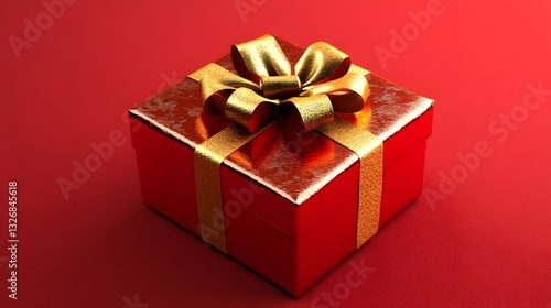 © Davy, Obraz premium Present box with bow isolated on pure red background