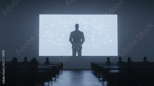 Obraz premium Presentation in Dark Room with Abstract Screen Display