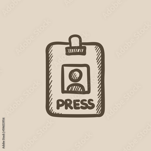 © Visual Generation, Naklejka premium Press pass ID card sketch icon.