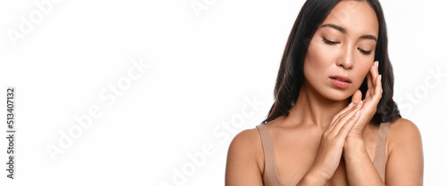 © Pixel-Shot, Obraz premium Pretty Asian woman on white background with space for text