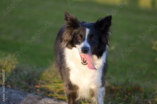 Fototapeta premium Pretty black and white Border Collie with tongue lolling out