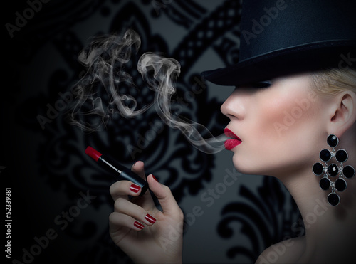 Obraz premium Pretty blonde girl with cigarette and red lips