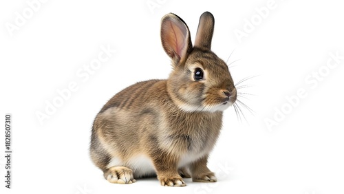 © Arshad, Obraz premium “Pretty brown rabbit with fluffy fur and alert ears, perfectly isolated on a white background for creative projects.”