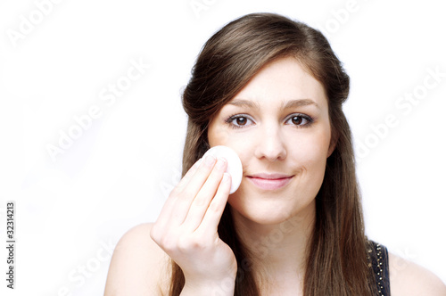 © royalregina, Fototapeta premium Pretty brunette girl doing her make up