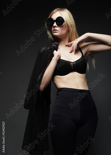 Fototapeta premium pretty fashion model on grey background