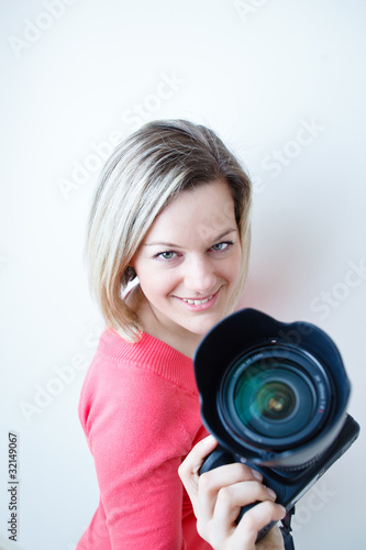 © lightpoet, Fototapeta premium pretty female photographer with her digital camera