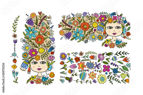 © Kudryashka, Fototapeta premium Pretty floral woman for your design