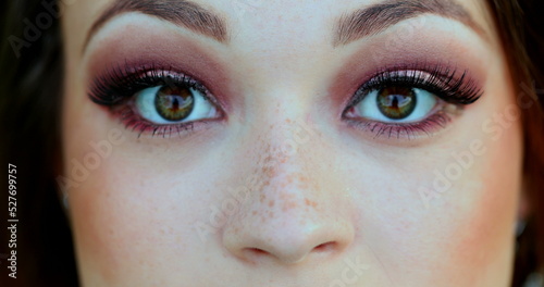 © Marco, Fototapeta premium Pretty girl closeup macro eyes opening. Young woman face