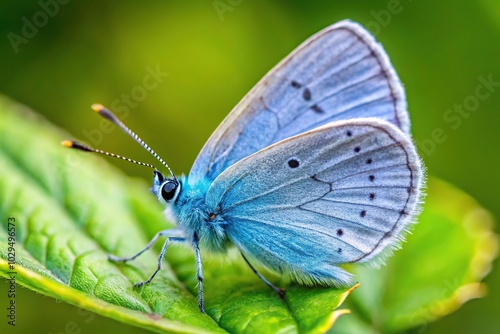 Fototapeta premium Pretty Holly Blue Butterfly perching on leaf at tilted angle